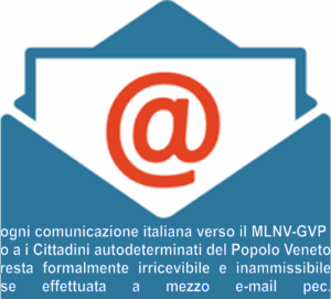 Questo Governo Veneto Provvisorio (GVP) costituito ai sensi e per gli effetti dell’art.96.3 del Primo Protocollo addizionale (1977) alle convenzioni di Ginevra del 1949 sotto l’egida di questo Movimento di Liberazione Nazionale del Popolo Veneto (MLNV) con la pubblicazione all’Albo Ufficiale del GVP, avvenuta in data 15 maggio 2014, ha invalidato ogni notifica e pretesa prodotta dalle autorità d’occupazione straniere italiane sui territori della Repubblica Veneta.